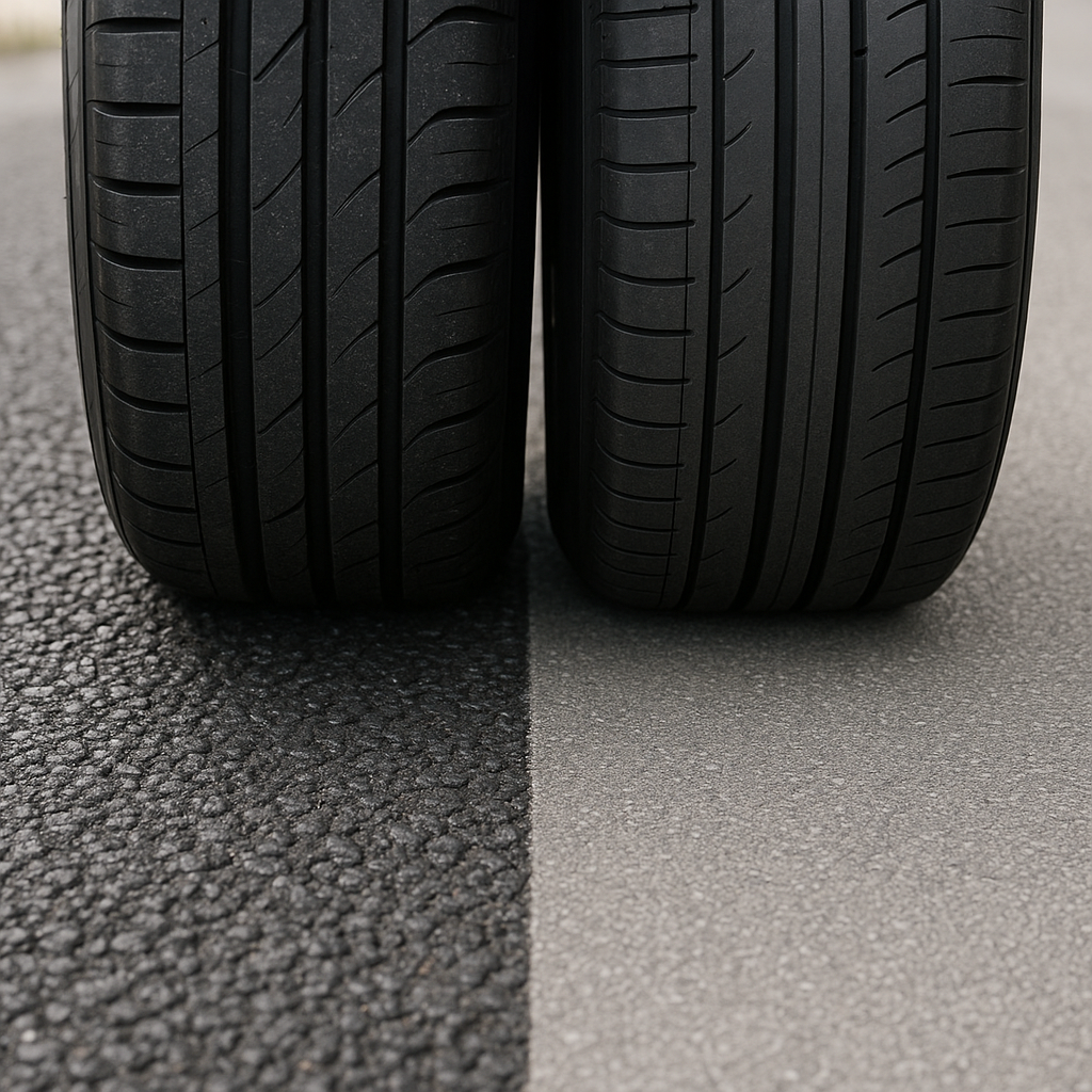 - Tarcie kinetyczne i statyczne – na nawierzchni porowatej wartość tarcia statycznego jest zazwyczaj wyższa, co poprawia przyczepność podczas ruszania i hamowania, jednak wzrasta również zużycie bieżnika.